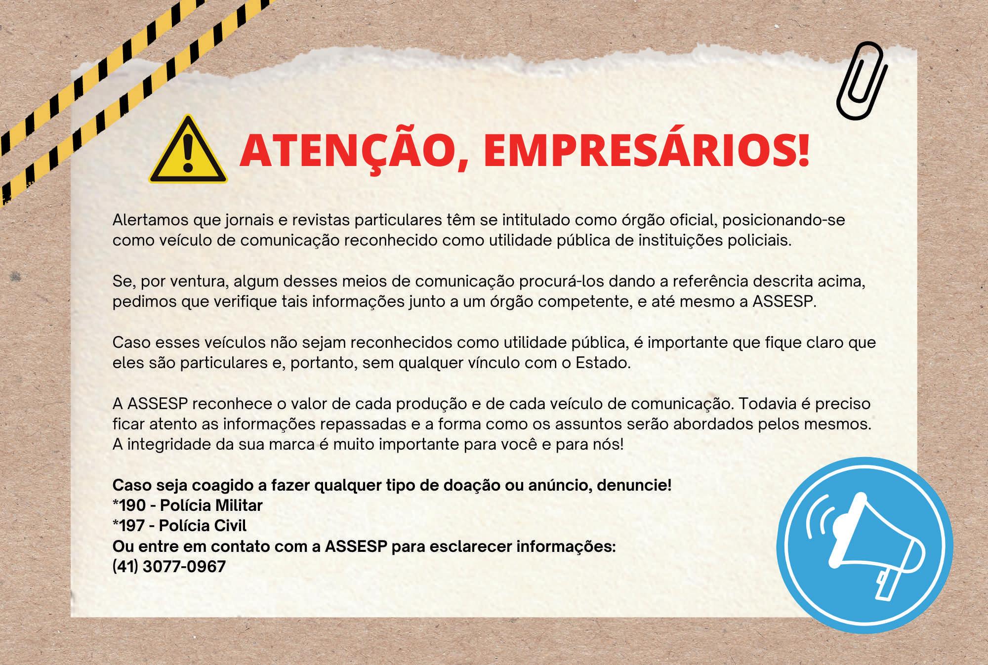 Gostaria de ver a sua empresa anunciada aqui? Envie um email para anuncios.assesp@gmail.com e receba mais informações sobre os nossos pacotes promocionais. Você também pode anunciar no nosso site. Consultenos!