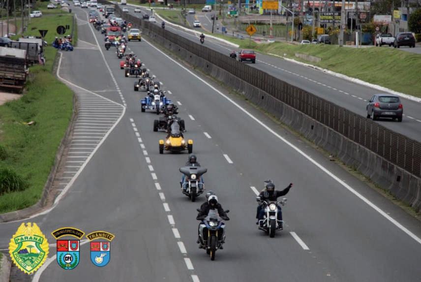 No último sábado de agosto, o Batalhão de Polícia de Trânsito participou do passeio motociclístico, que saiu da Academia Policial Militar do Guatupê com destino ao Palácio Iguaçu.