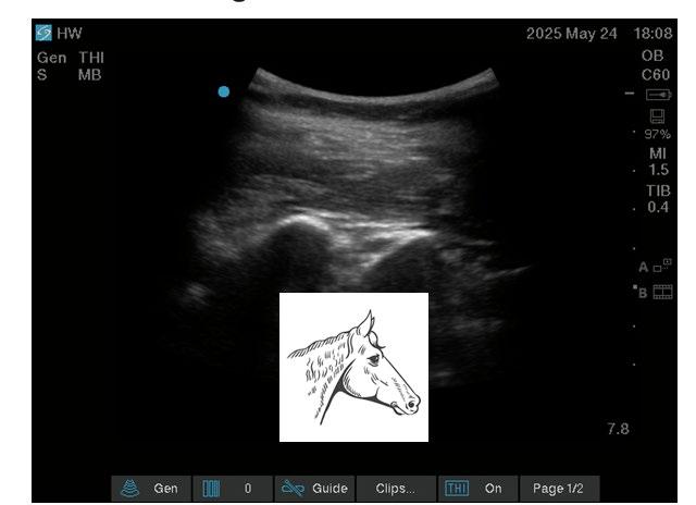 Parasagittal scan Horse head sign at the lamina level