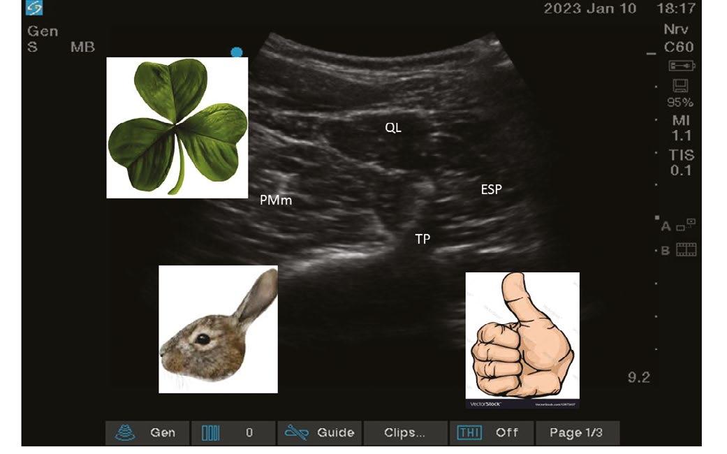 • Description: The transverse process, QL, erector spinae, and psoas major form a shamrock.