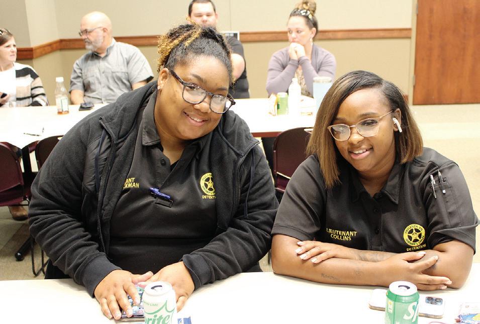 Right: Jail Supervisor Amanda Rodgers and Jailer Alesia Etheridge traveled from Lincoln County. Far right: The Faulkner County Sheriff’s Office was well represented. Pictured are Sgt. Chris Watkins and Sgt. Anngelica Beyers.