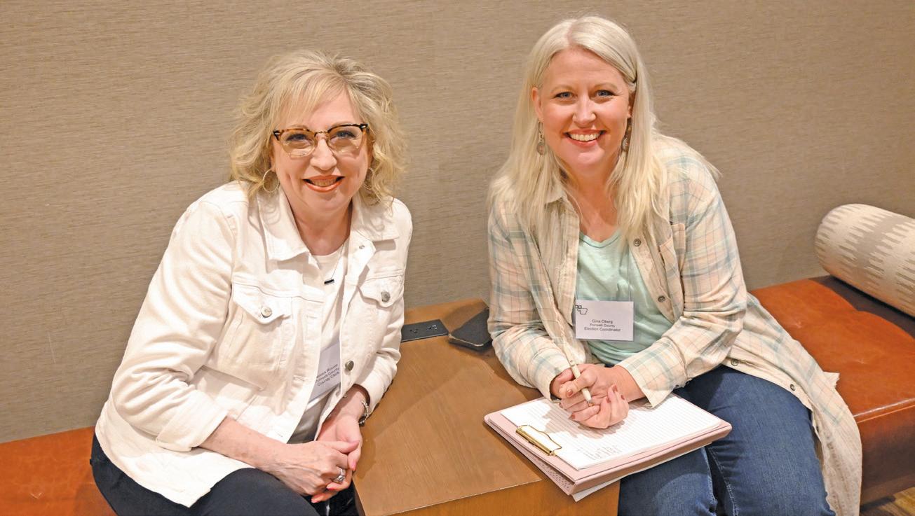 Left: Poinsett County Election Clerk Teresa Rouse and Election Coordinator Gina Oberg are all smiles while enjoying a break together.