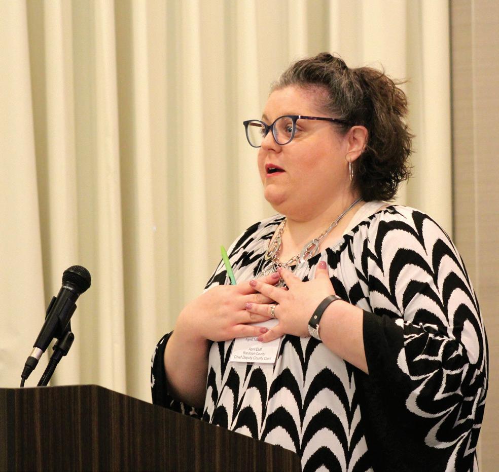 Below: Randolph County Chief Deputy Clerk April Duff makes a presentation about how she handles small estate filings.