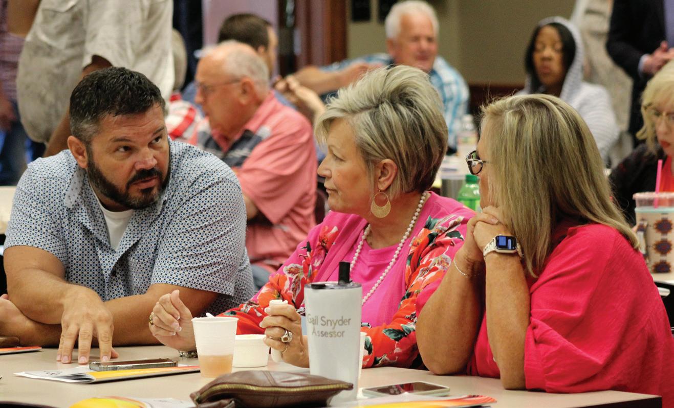 Right: Assessors Russell Hill of Washington County, Diane Tucker of Independence County, and Gail Snyder of White County have a discussion during the lunch break.