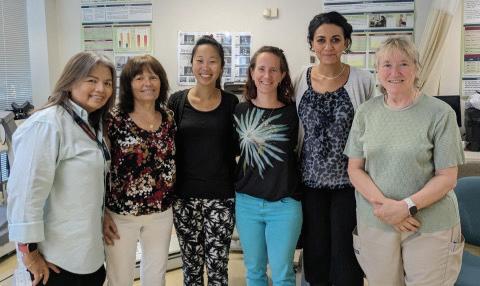 From left: Georgina Cama, patient ; for the Clinic: Nathalie Côté, nurse, Angela Yung, physiotherapist, Marie-Eve Letellier, kinesiologist, Marize Ibrahim, physiotherapist, Dr. Anna Towers