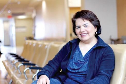 Dans l’ordre habituel : Georgina Cama, patiente ; pour la Clinique : Nathalie Côté, infirmière, Angela Yung, physiothérapeute, Marie-Eve Letellier, kinésiologue, Marize Ibrahim, physiothérapeute, Dre Anna Towers