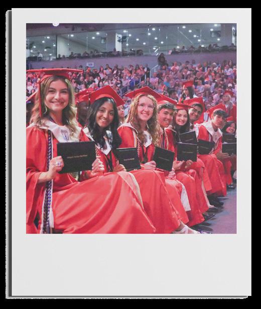 Congratulations to the 480 students who graduated from Grapevine High School on May 23, 2024. The graduating class earned over $15 million in scholarships and will be attending prestigious universities such as Dartmouth College, Harvard University, Northwestern University, Rice University, Stanford University, Texas A&M University and the University of Texas. Among the many impressive accolades of this class are perfect ACT and SAT scores, 10 National Merit Finalists, a U.S. Presidential Scholar, admissions to three military academies and a record-breaking class GPA of 5.9. In their four years, GHS seniors claimed numerous 5A State Championships in events like soccer, baseball, wrestling, cross country and swim and dive. They were also state champions in Math and Number Sense, earned Future Farmers of America awards and were named DECA state winners.