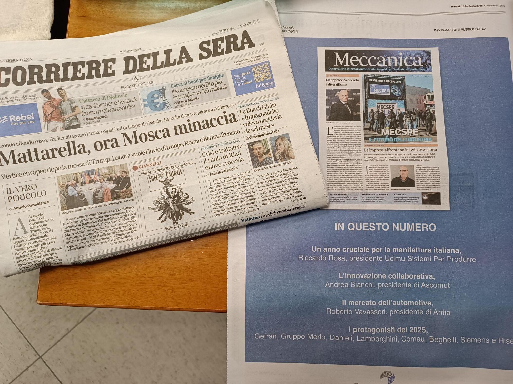 Il18febbraiosuiquotidianiCorrieredellaSeraeLaVerità,AIdAMe ilPresidenteRaffaeleBarilesonoapparsiall’internodellapagina dedicataaMeccanica.