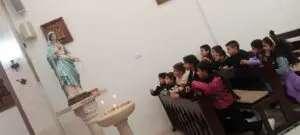 Nella foto: i bambini della scuola latina di Rafidia, Nablus, insieme ai loro fratellini e a sr Mira, suora del Rosario che li prepara alla loro Prima Comunione, si sono uniti in preghiera in diretta su Radio Maria Nazareth dalla Cisgiordania (Palestina) e hanno acceso una candela per Radio Maria. Noi ricambiamo con tanto amore e tanta preghiera��