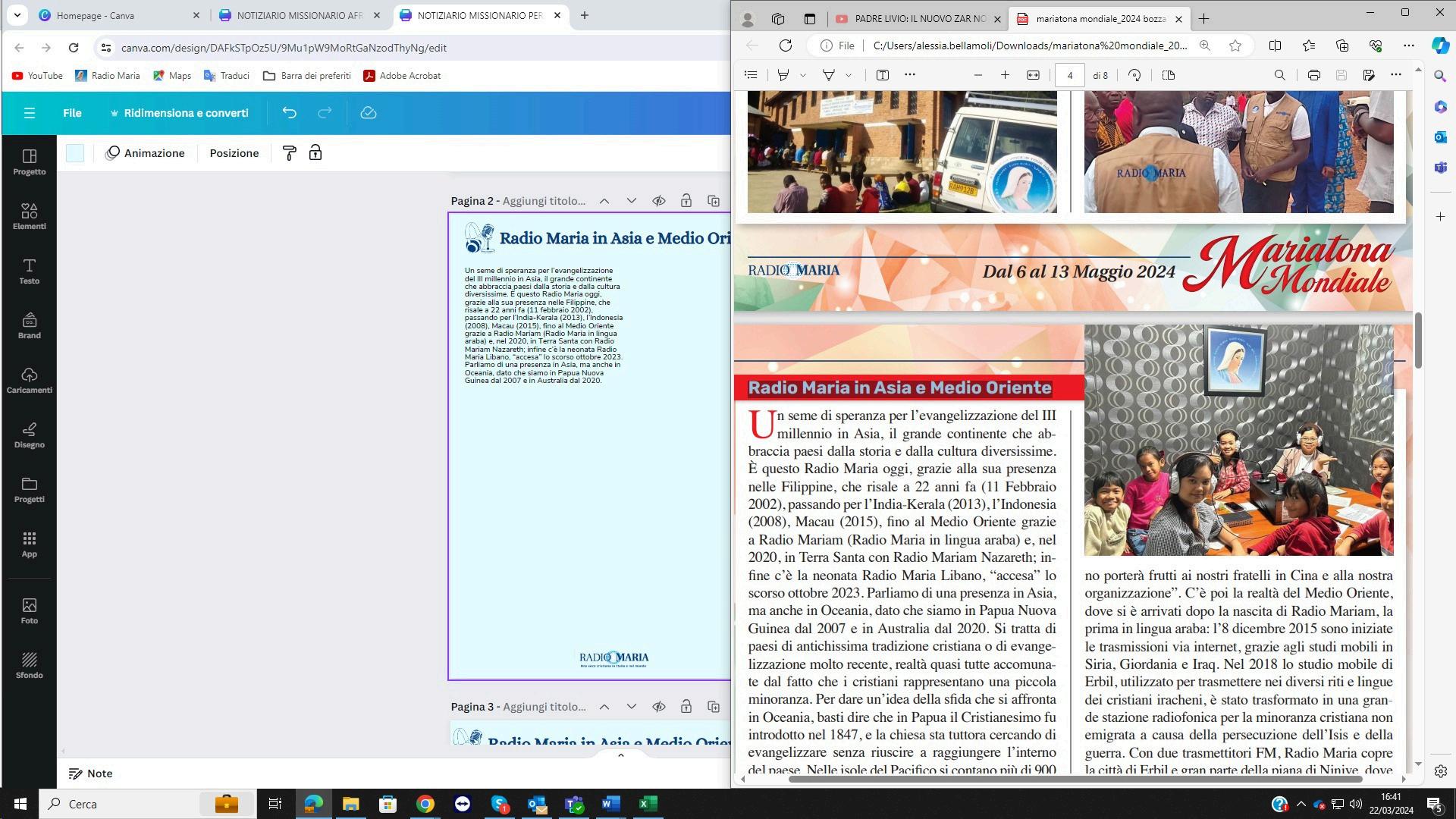 Nel periodo del covid (2021) è stata organizzata la redazione in mandarino, lingua principale della Cina. “Portare la fede in questa lingua e cultura” – evidenzia il presidente Vittorio Viccardi – “appare un compito arduo e immane per le nostre risorse. Ma sappiamo che consacrando questa missione alla Vergine Maria, il nostro umile lavoro quotidiano porterà frutti ai nostri fratelli in Cina e alla nostra organizzazione”. C’è poi la realtà del Medio Oriente, dove si è arrivati dopo la nascita di Radio Mariam, la prima in lingua araba: l’8 dicembre 2015 sono iniziate le trasmissioni via internet, grazie agli studi mobili in Siria, Giordania e Iraq. Nel 2018 lo studio mobile di Erbil, utilizzato per trasmettere nei diversi riti e lingue dei cristiani iracheni, è stato trasformato in una grande stazione radiofonica per la minoranza cristiana non emigrata a causa della persecuzione dell’Isis e della guerra.