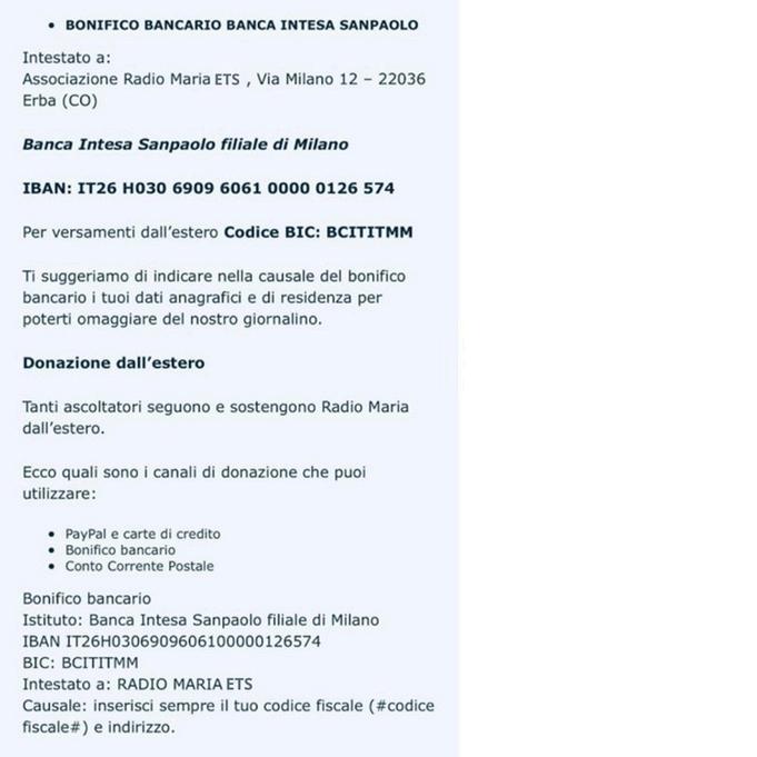 Grazie di ogni vostro sostegno e donazione, affinché questa radio possa andare avanti nel trasmettere questi valori. Abbiamo bisogno del vostro aiuto, perché, grazie a Radio Maria possiamo costruire una comunità di preghiera e di collaborazione, dove i cristiani diventano protagonisti di speranza. Grazie di cuore.