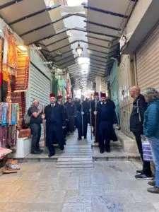 Lo scambio di auguri tra il Patriarca latino e i fedeli di Gerusalemme, tradizionale incontro che si svolge ogni 24 mattina prima dell’inizio della processione a Betlemme!