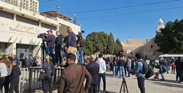 Lo scambio di auguri tra il Patriarca latino e i fedeli di Gerusalemme, tradizionale incontro che si svolge ogni 24 mattina prima dell’inizio della processione a Betlemme!