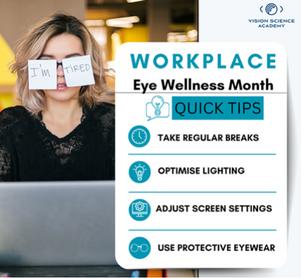 Promoting eye health in the workplace isn’t just about preventing discomfort but about increasing productivity and fostering a healthier, happier workforce Workplace Eye Wellness Month highlights the importance of eye health for everyone to promote betterfocusandperformance