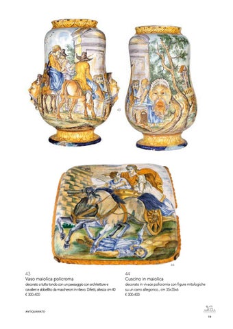 decorato in vivace policromia con figure mitologiche su un carro allegorico., cm 35x35x6 ₏ 300-400