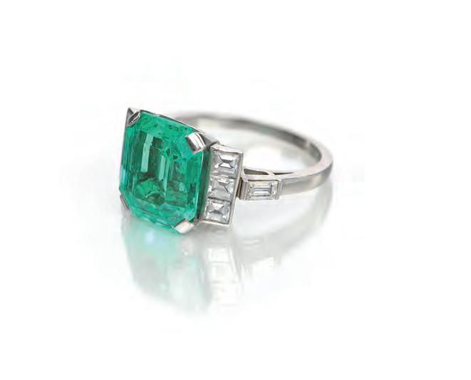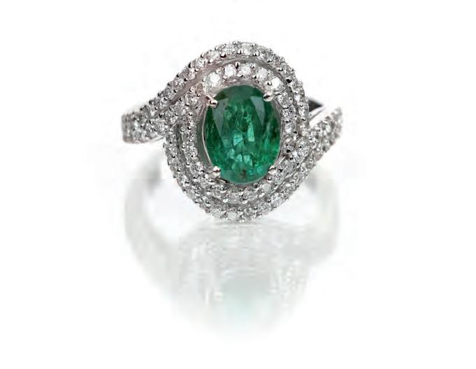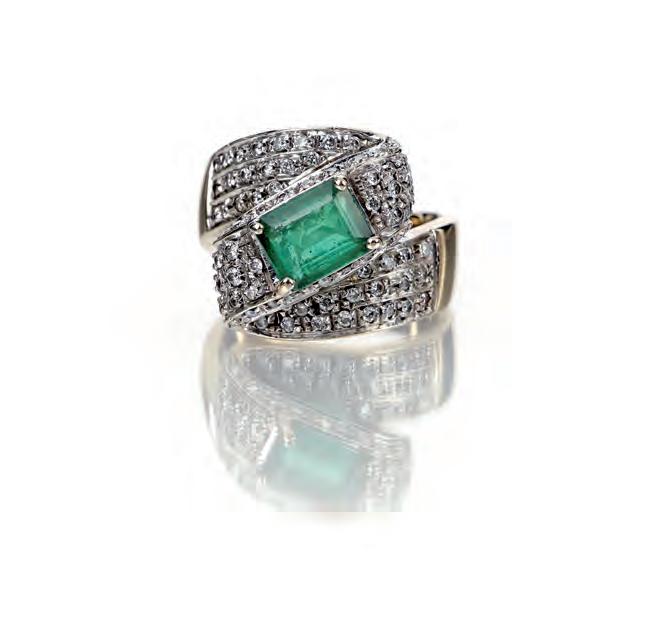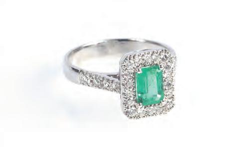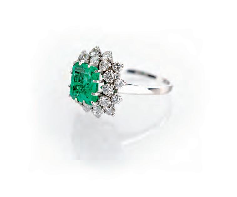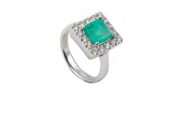 Oro bianco 750/000. Smeraldo naturale in taglio smeraldo ct 1,30 ca. , diamanti in taglio rotondo brillante ct, 0,30. Peso complessivo gr.5,30.