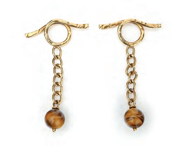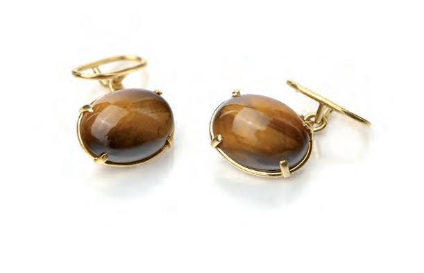 COPPIA DI GEMELLI IN ORO E OCCHIO DI TIGRE, mm 18x33