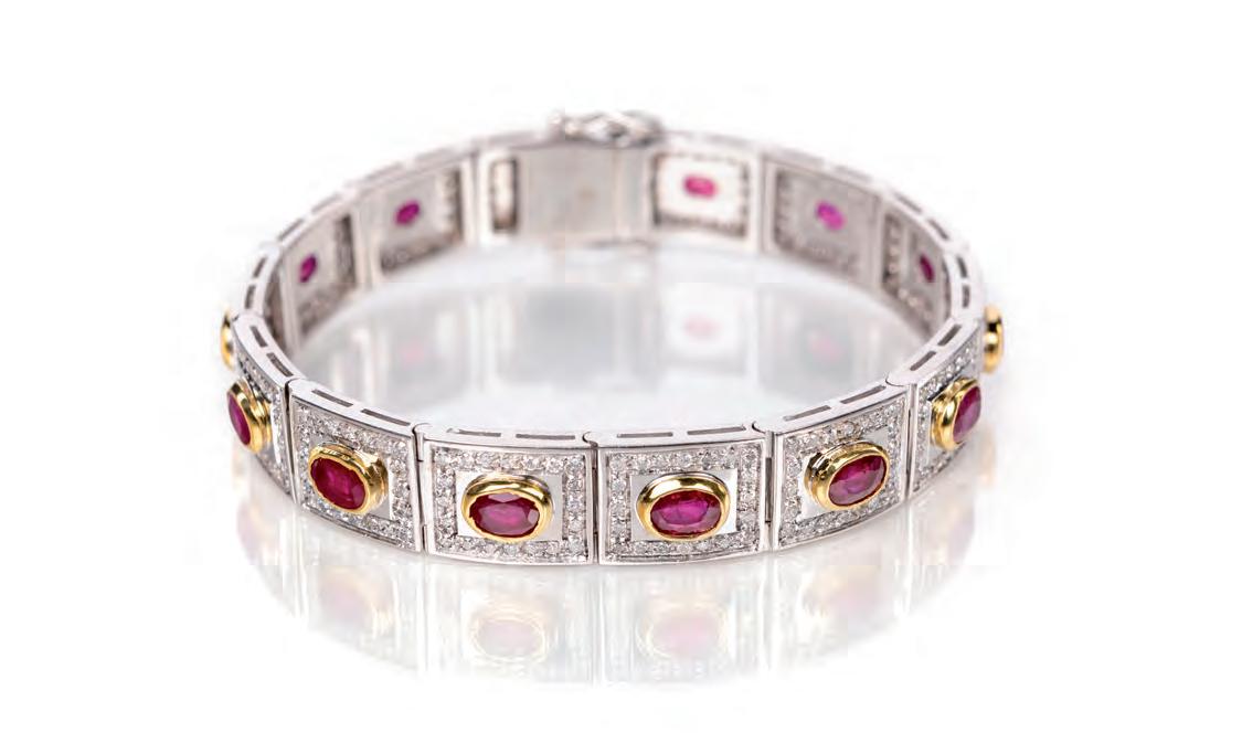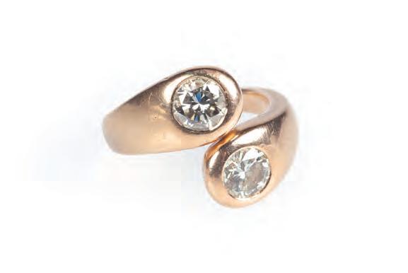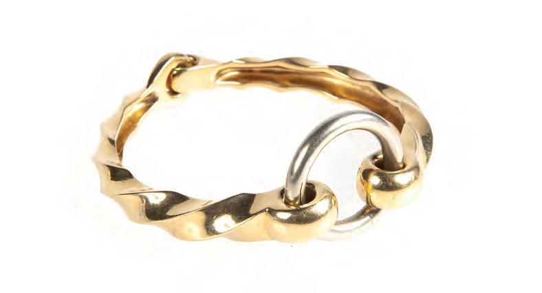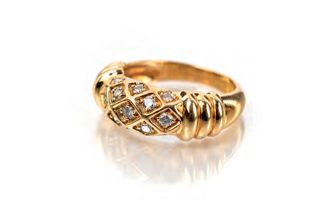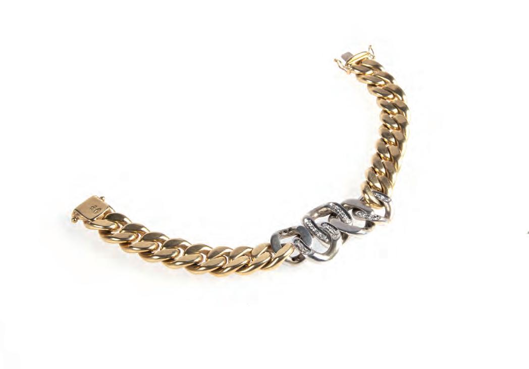Oro giallo e bianco 750/000. Diamanti in taglio rotondo. Peso complessivo gr.12,80.