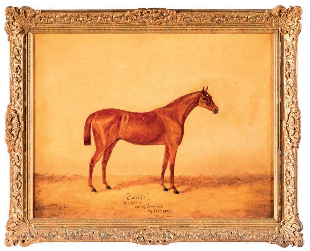 Il titolo del dipinto segue la tradizione della genealogia equina tipica dei ritratti di cavalli da corsa o da allevamento dell’Ottocento, indicando il padre (Sylvio), la madre (Cremona) e il nonno materno (Cremorne). Il quadro raffgura un cavallo di pregio e, attraverso il realismo e la precisione documentaria di Edward Garraway, diventa una testimonianza visiva della sua linea genetica di eccellenza. cm 43,5x56 - con cornice cm 52,5x65