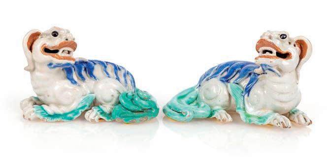 COPPIA DI LEONI GUARDIANI IN PORCELLANA SMALTATA