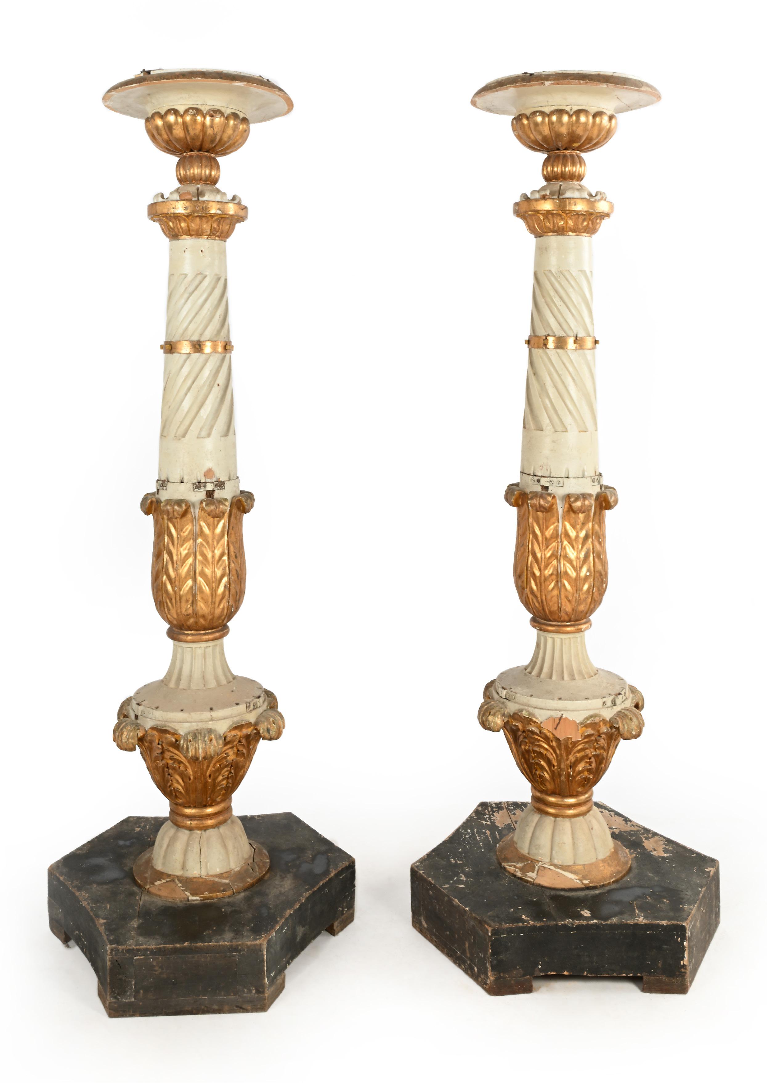 stelo a balaustro con nodo a vaso su piede circolare; la sommità reca un’apertura stretta per ospitare un perno a pianta squadrata altezza cm 21