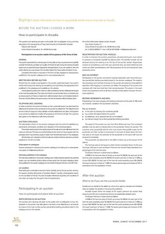 BIDS VIA INTERNET Participation in the auction via internet requires registration with the on-line auction portals (live bidding providers) stated in the auction catalogue. The registration procedure and methods of access to the auction are stated by those platform operators. After logging in, customers can follow the progress of the auction and compete with their own bids from their remote location. The screen in the room shows the progressive trend of all bids, including those placed through the computer platforms.