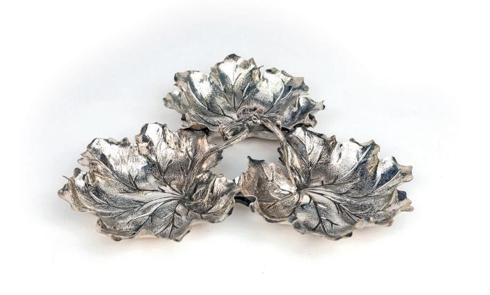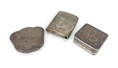 argento 800/000 la prima di forma quadrangolare con decorazione sbalzata, il secondo a superficie liscia e data incisa all’interno (4.4.1918) e il terzo di forma sagomata con decorazione incisa e specchio interno misure diverse - peso complessivo lordo gr. 234