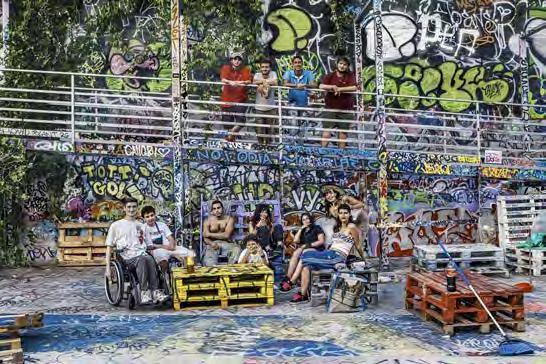 Behind the old Tuscolana Station are the buildings of Via Gela, shops and the Liceo Classico Augusto high school. Among these stands an imposing underground car park, whose roof, at street level, has been neglected for countless years. Here, the young people of Urbis Next Gen organise cultural events with breakdancing, hip-hop, rap and street art activities in order to give the space back to their peers, not only from the neighbourhood but from all over Rome. The project began with the construction of an access ramp, a symbol of inclusiveness and collective care.