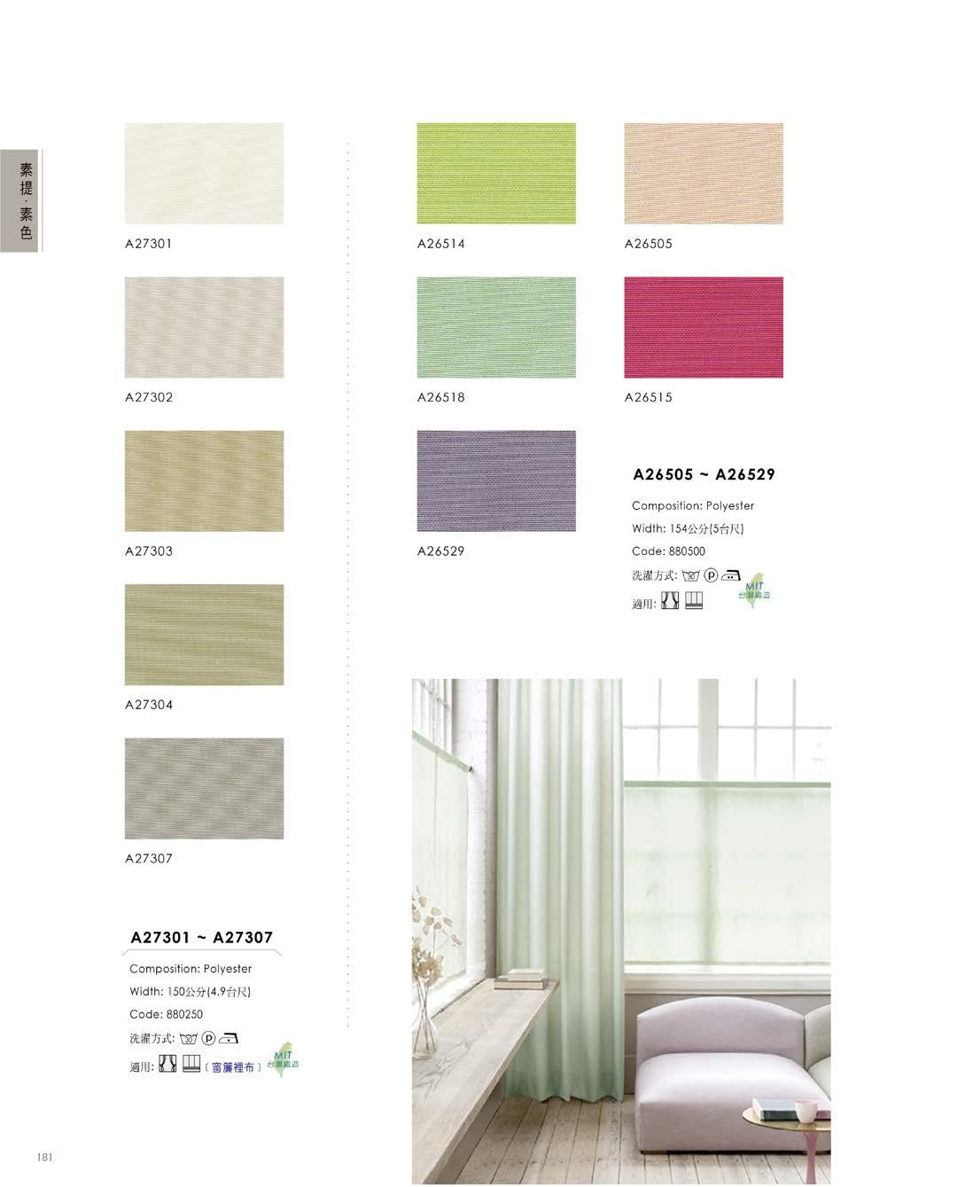 Composition: PolyesterWidth: 約 145 公分 (4.8 台尺 ) Code: 881300