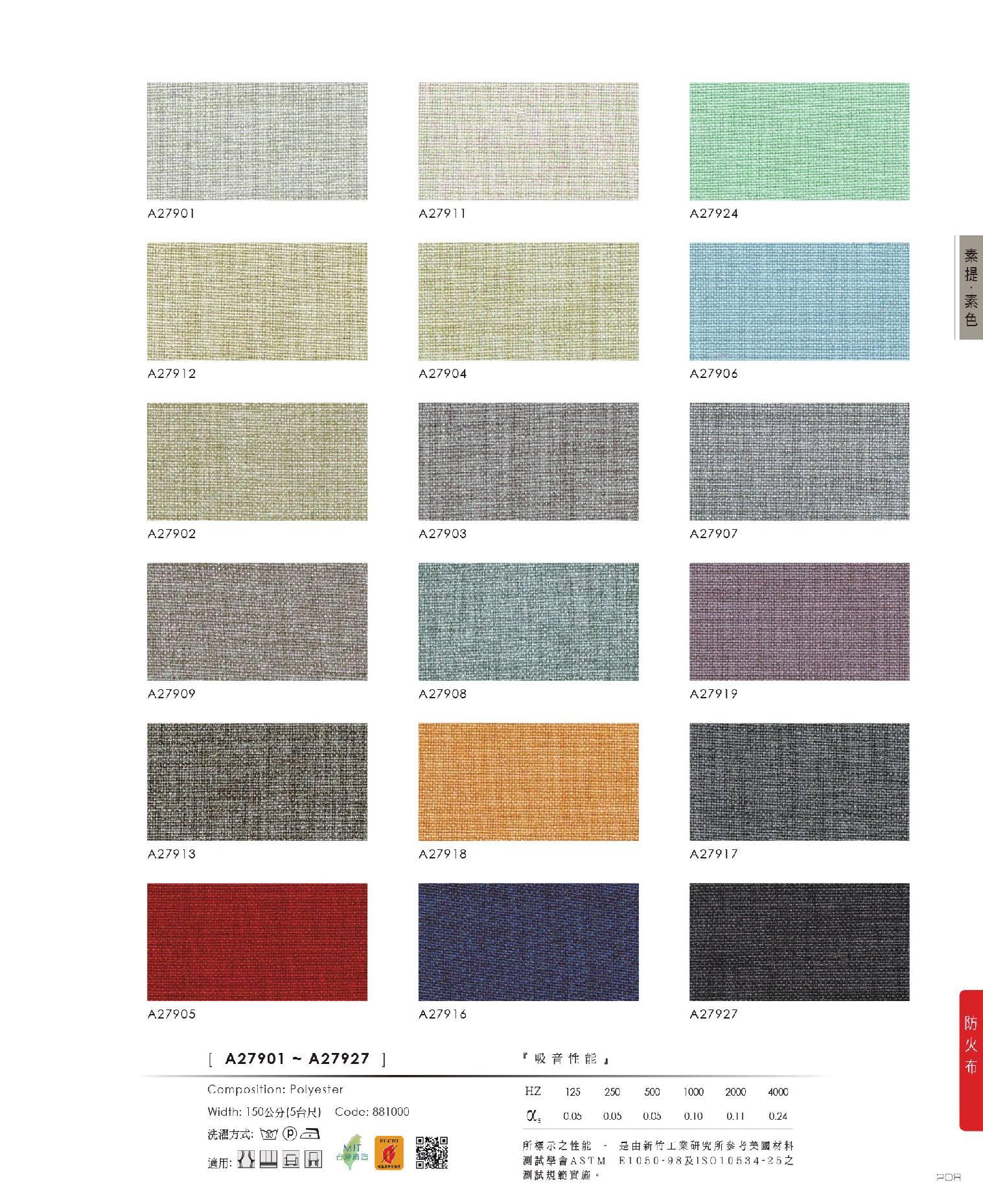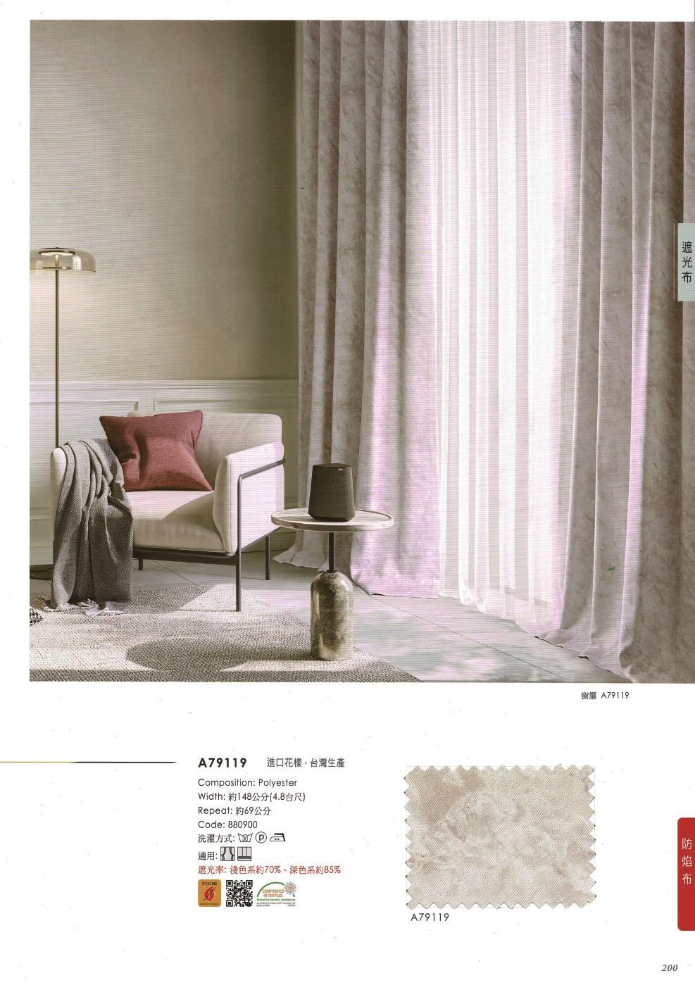 Composition: Polyester Width: 約 150 公分 (5 台尺 ) Code: 881200 機能性 : 防火遮光布 遮光約 75%