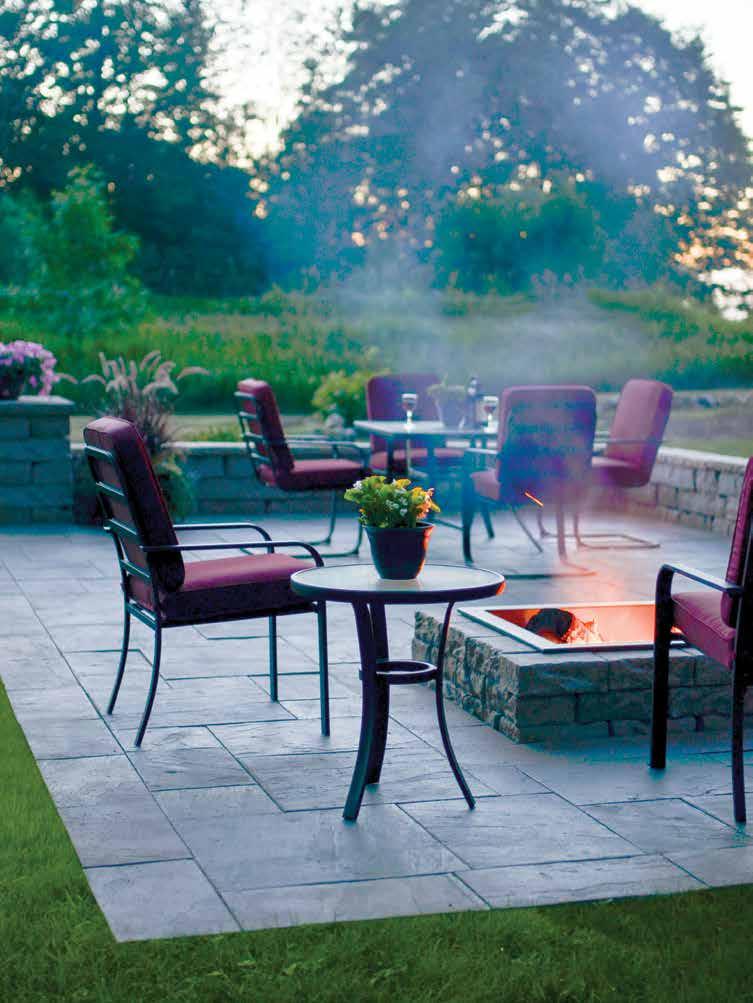 Not only does a square patio mean a formal, chic look for your customer, it means straightforward installation for you and your team. The Formal Patio options in this guide feature Kodah Walls, Dimensional Flagstone slabs, and the Rosetta Square Fire Pit, for visuallystriking linear proportions and as little concrete cutting as possible.