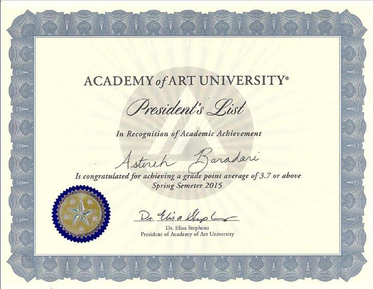 2019- scholarship from Academy of Art University