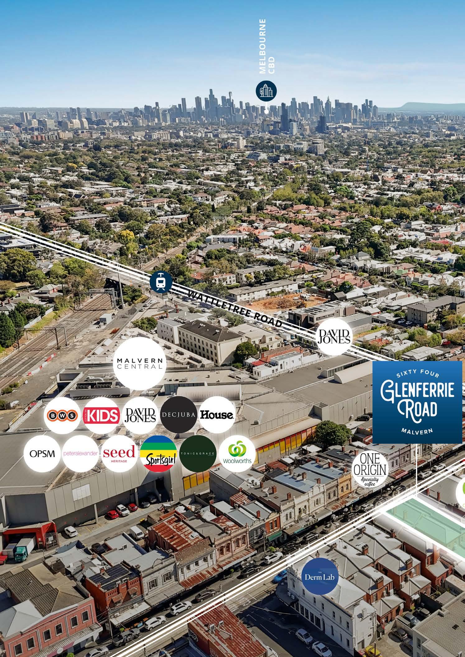 Nestled in the heart of the vibrant suburb of Malvern, this iconic location has a well-balanced blend of convenience with sophistication. 64 Glenferrie Road Malvern is located in close proximity to the intersection of Wattletree Road. The central location is highly sought-after due to the abundance of lifestyle amenity such as Malvern Central - offering David Jones, Woolworths, Adairs and more. In immediate proximity include Club Lime, food options and ample lifestyle amenity.