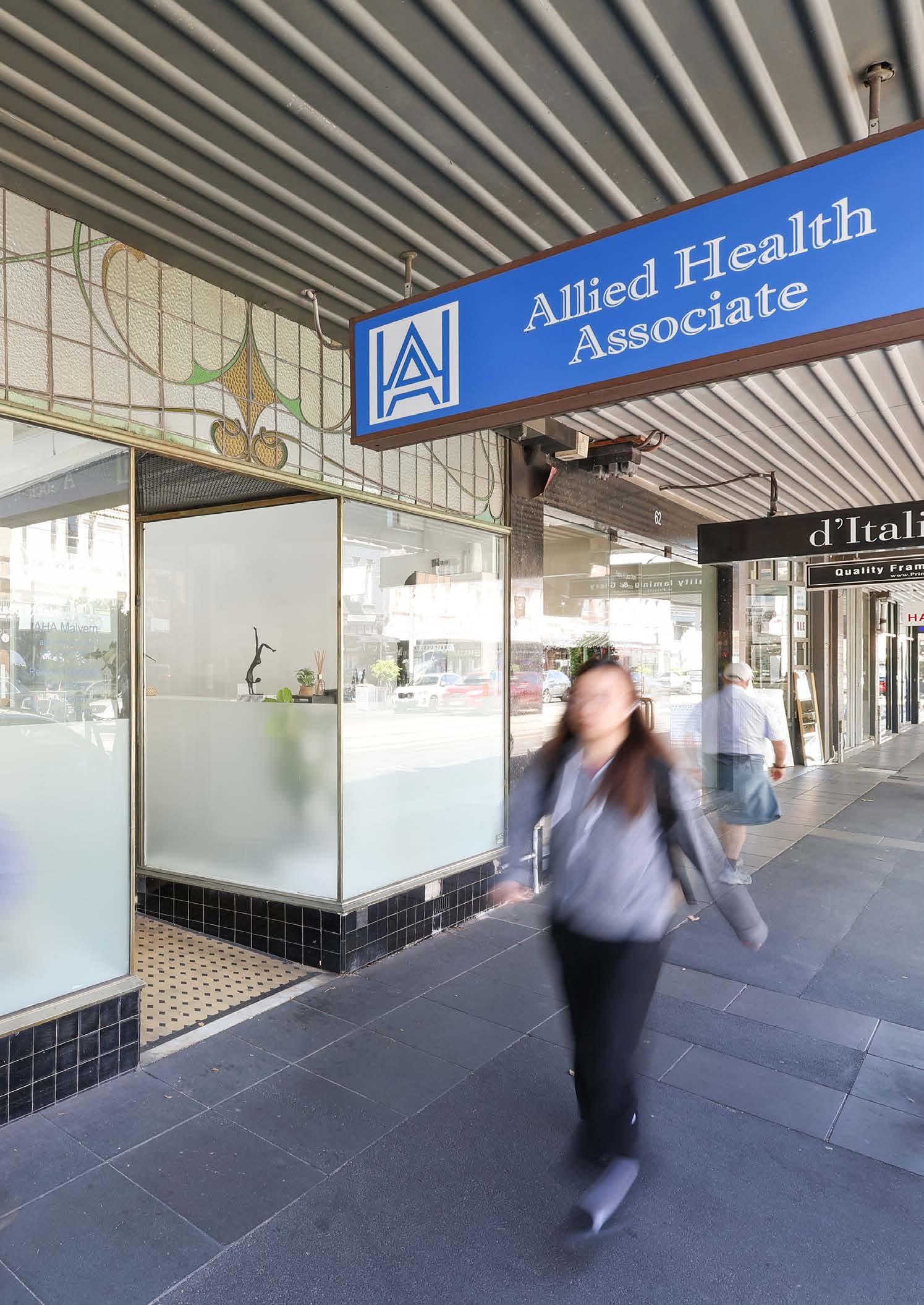 Leased to Allied Health Associate (AHA) a multidisciplinary allied health clinic that offers services such as myotherapy, remedial massage and chiropractic services.