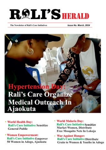 The events surrounding World Hypertension Day, World Health Day, World Malaria Day, and the ongoing battle against hu nger underscore the multifacetednatureofthechallengesfacedbycommunities,particularlythose marginalized and disadvantaged In response, Rali's Care Initiative has demonstrated aholisticapproach thataddressesnot onlyimmediateneedsbut also the underlying factors contributing to health disparities and socioeconomicinequalities