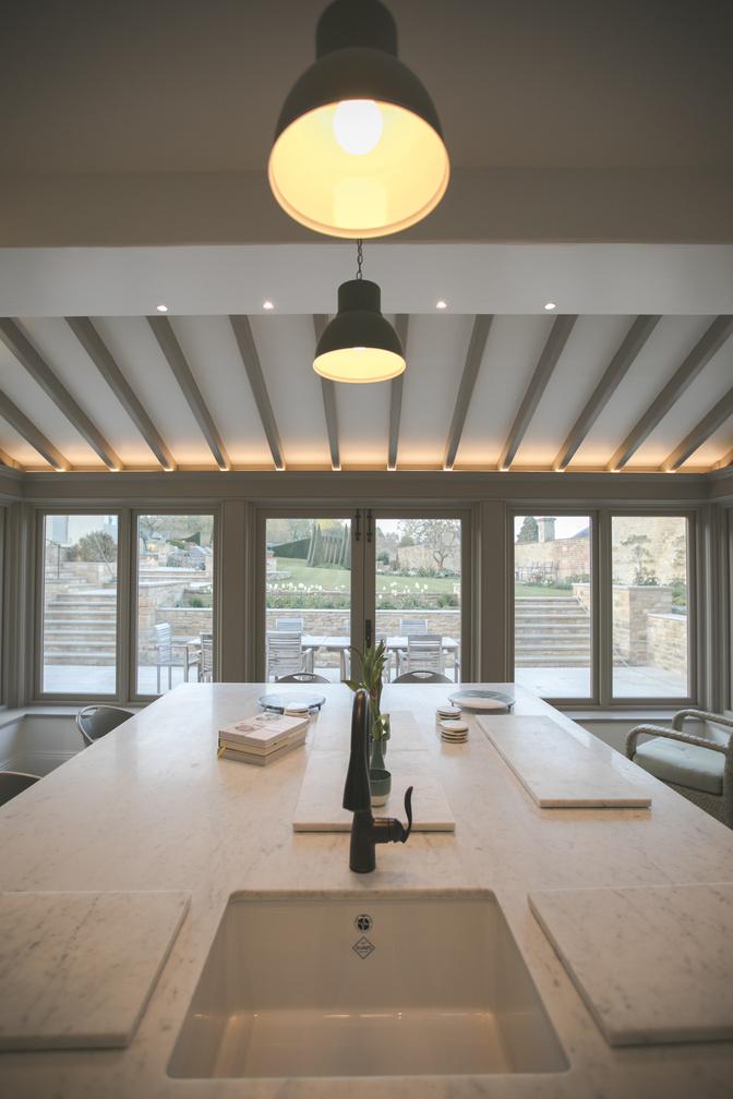 Luxury Kitchen Designed by Interior Design Firm, Stella Mannering & Company. Lighting design,smart tech installation, heating control and implementation of the Smart Home Blueprint by the Astra Lumos team