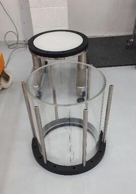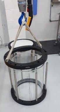 6. Locate the acrylic tube in the bottom column flange. Ensure it is located centrally and push down to ensure correctly seated. This is a two-person operation.