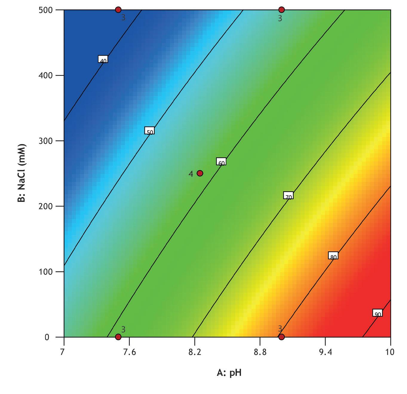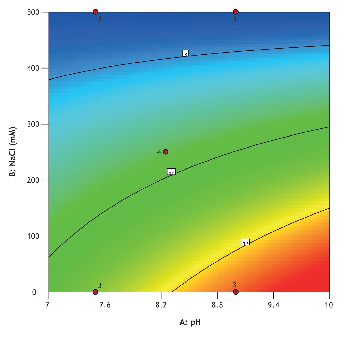 Screening was performed using a high-throughput system (Biomek i7) with a Captiva Plate® containing 16 x 0.25 mL MiMode PuraBead® HX2 adsorbent. The DOE showed that binding capacity, recovery, and purity were optimized at high pH and low NaCl concentration.