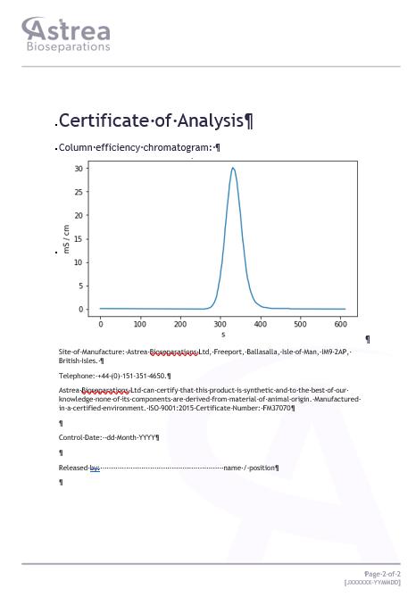 As this column is provided as a pre-packed unit, if further advice or if performance is not as expected, it is recommended that you contact our Field Application Specialists: fas@astrea-bio.com