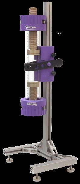 3. Mount the column assembly vertically onto a suitable bracket for packing. Column stands are available for purchase separately. Attach appropriate tubing to the outlet of the column, and cap. Attach appropriate tubing to the unattached piston, and connect to the chromatography system to be used for packing.