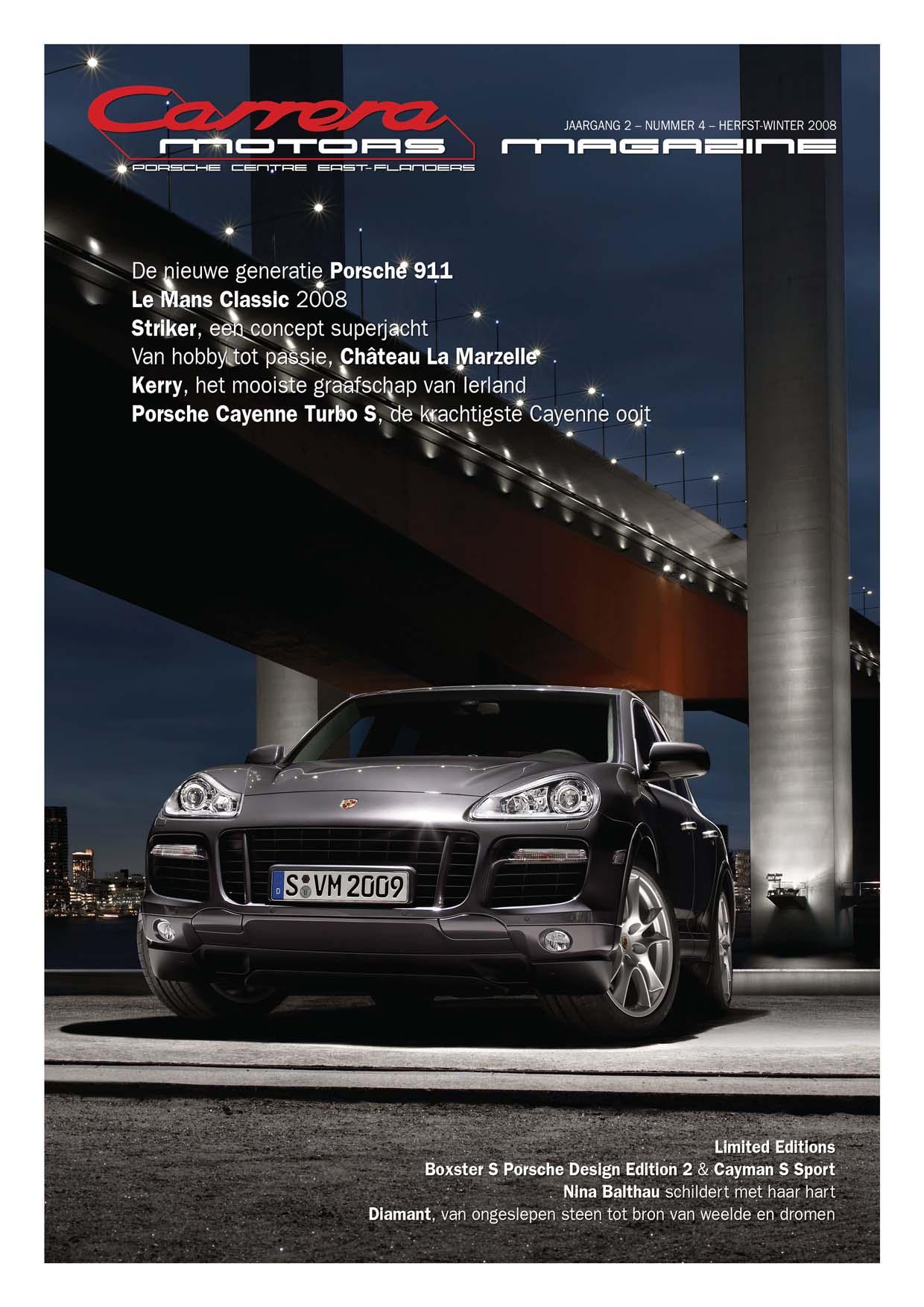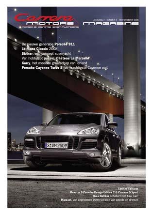 Niets uit deze uitgave mag worden verveelvoudigd en/of openbaar worden gemaakt door middel van druk, fotokopie, elektronisch of op welke wijze dan ook, zonder voorafgaande schriftelijke toestemming van de uitgever. Aan de samenstelling van deze uitgave is uiterste zorg besteed, desondanks kan niet worden ingestaan voor de feitelijke juistheid of volledigheid van de opgenomen gegevens. In geen geval kan er een juridische basis worden aan ontleend. De redactie en uitgever aanvaarden geen aansprakelijkheid voor de volstrekte juistheid en volledigheid van gegevens van de in deze uitgave opgenomen teksten. ©2008 Carrera Motors Magazine.