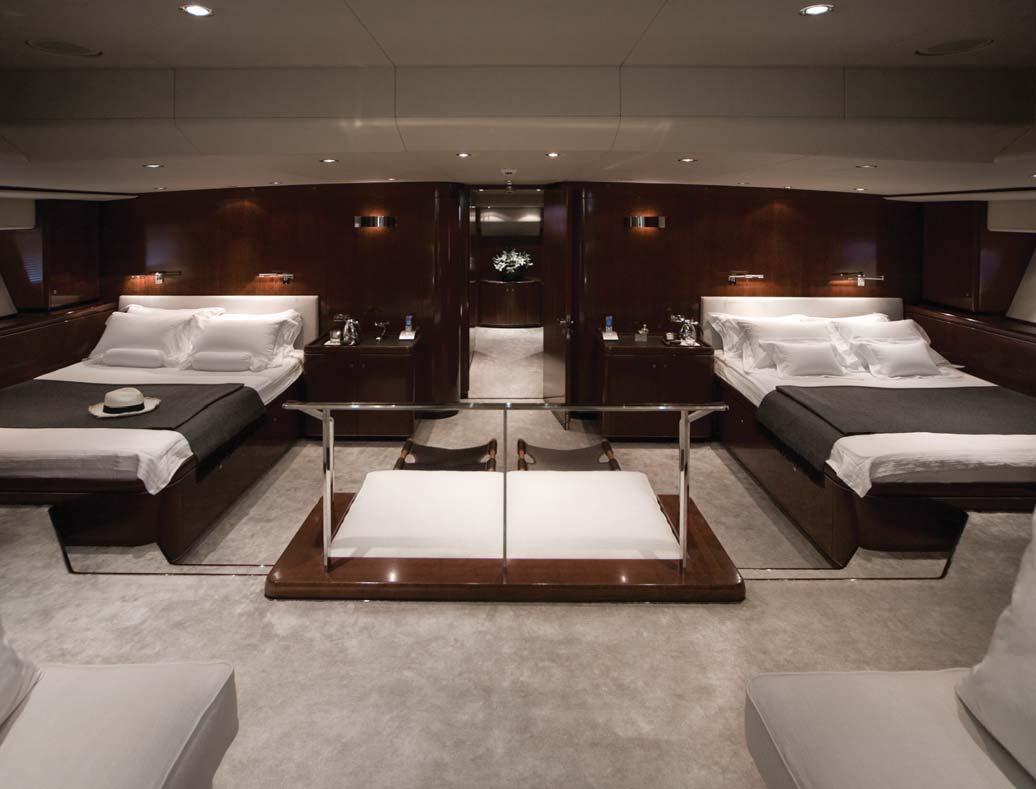 Het ontwerp van Young moest een interieur creëren dat tegelijkertijd stijlvol en comfortabel was. Daarom herdacht hij de inrichting van de binnenkant van het jacht volledig. Hij slaagde daarin met een lager dek, dat hij “symmetrisch en kalm” noemt. Het is er niet druk, er gebeurt niets wat er niet moet gebeuren en toch kunnen we het niet minimalistisch noemen. De algemene indeling biedt voldoende ruimte voor zes tot zeven gasten en zes crewleden.