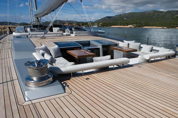 komen of via een centraal luik in de suite - het moet een rustplaats vormen, weg van de activiteiten aan boord, op volle zee of in de haven. Het bevindt zich zelfs lager dan de voorste stuurhut, dus het beste uitzicht hebt u op het achterdek.