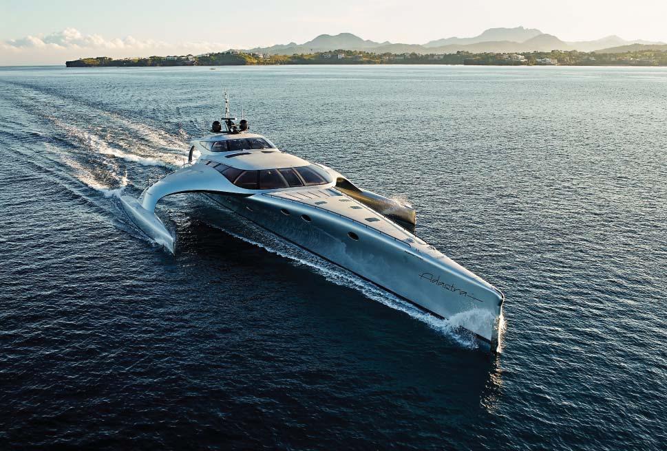 Zodra je de Adastra by Shuttleworth Design, de 42,5 m lange trimaran-superjacht van McConaghy Boats, ziet, vang je een glimp op van wat nog moet komen. Je kijkt niet enkel naar het jacht van morgen, maar naar de hele jachtindustrie van de toekomst. Haar prestaties en ontwikkeling zijn – in de ruimste zin van het woord – van wereldniveau. Ze heeft een bereik van 10.000 zeemijl en werd in Groot-Brittannië ontworpen. Het interieur werd ontworpen door een Deense, toevallig ook de eerste vrouwelijke commodore van de Royal Hong Kong Yacht Club, en het hele schip werd in China gebouwd door een werf met Australische eigenaars. En toch werd voor de Adastra niet zómaar het extreme opgezocht.