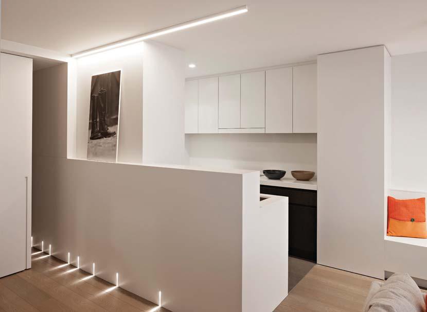 Ceasarstone werkbladen en een ‘zwevend’ keukeneiland. Op de begane grond is er ook een kleinere kamer nabij de voordeur die perfect is om als TV-kamer of thuiswerkplek in te richten.