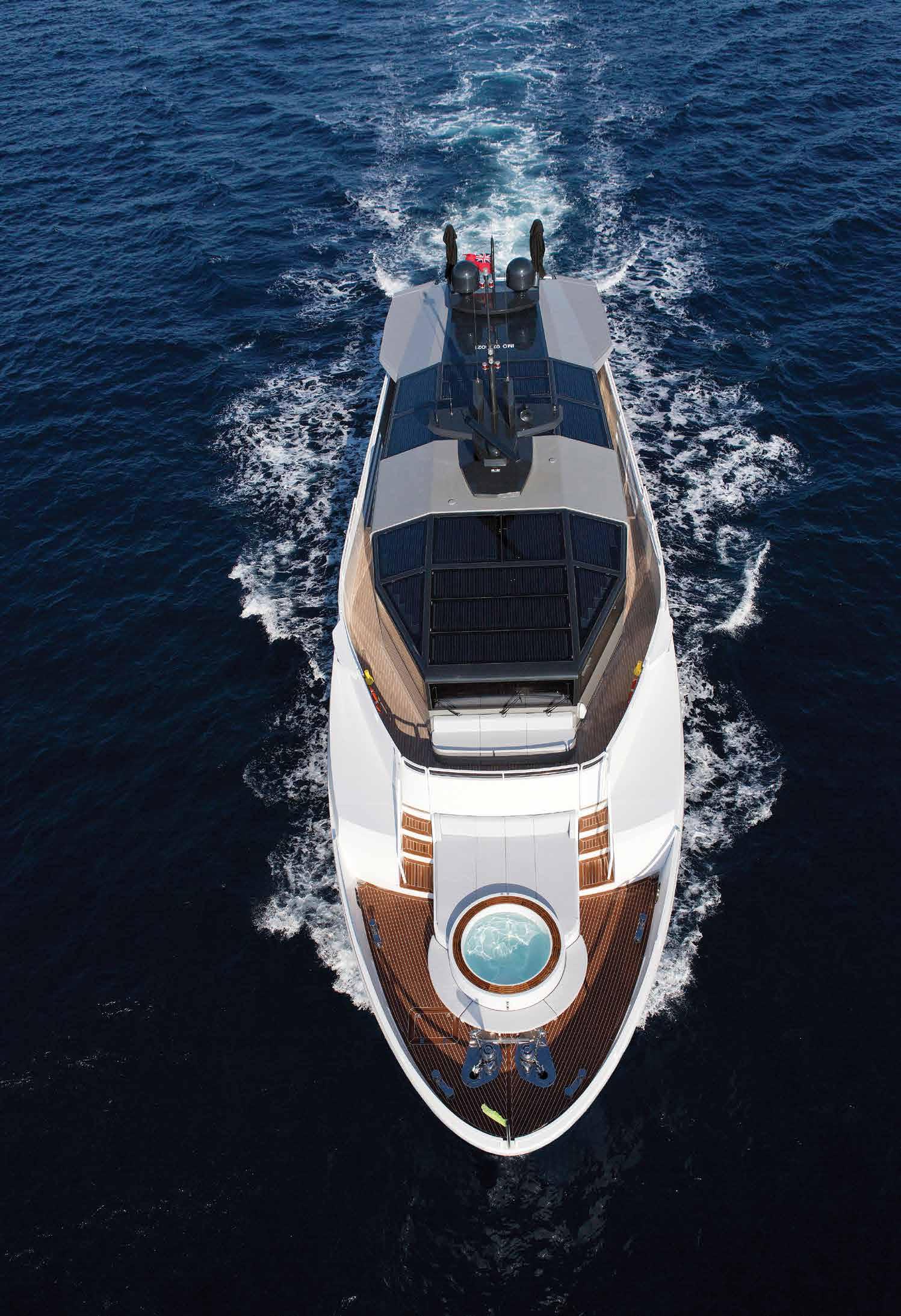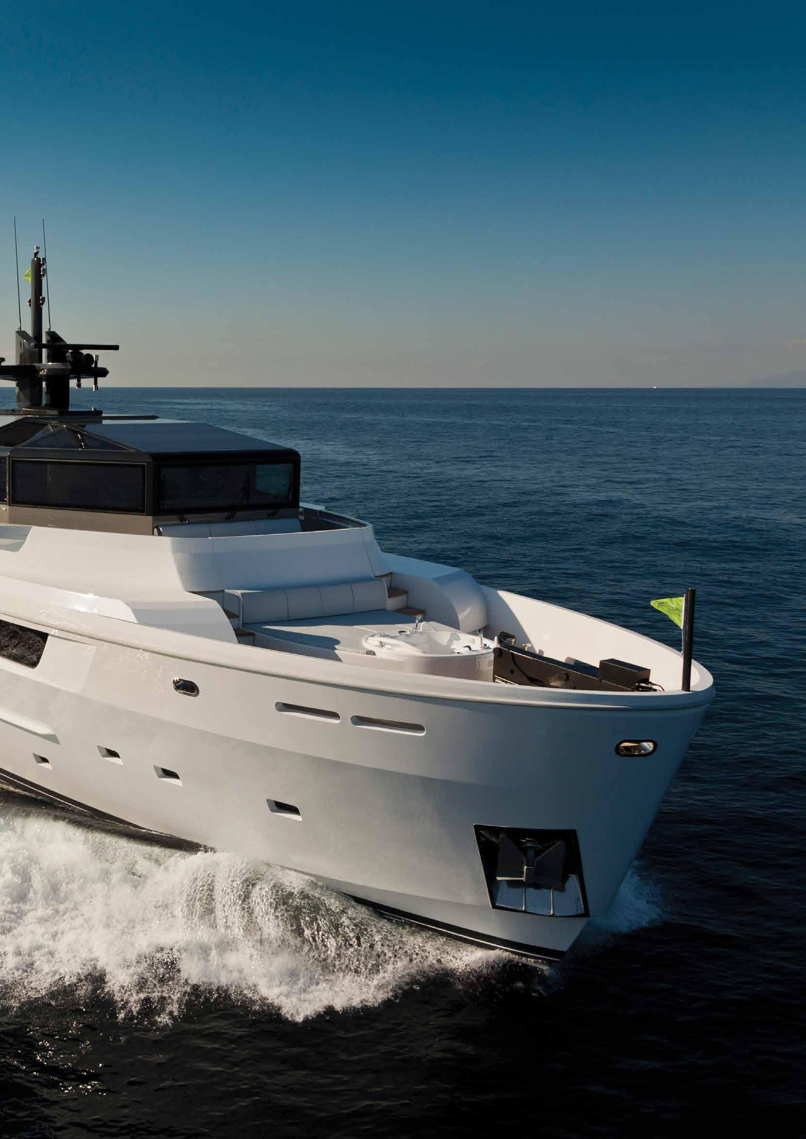 34. De Arcadia 115 is een superjacht met een zeer aparte, maar stoere uitstraling. Haar aantrekkingskracht gaat niet enkel uit van het moderne interieur, maar ook van twee fundamentele eigenschappen: licht en ruimte.