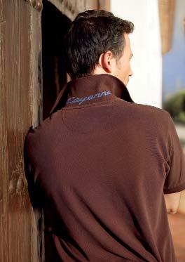 Cayenne poloshirt. Hoogwaardig poloshirt met minutieus afgewerkte details. Opgestikt Porsche logo op het linkervoorpand. Opdruk met logo op de onderzijde van de kraag. Knoopsluiting op blauwe ondergrond. Binnenafwerking in donkerblauw en oranje. In donkerbruin. 100% katoen. Maten: S, M, L, XL, XXL WAP 778 00S-XXL 17