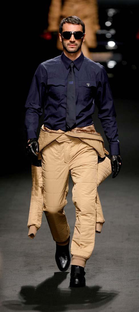 Hoewel voetbal nog steeds het startbeeld was van de collectie en de modellen rasechte voetballers waren, zorgde Dirk Bikkembergs toch voor enkele fundamentele veranderingen. De geur van groen gras was vervangen door de geur van ronkende motoren en gloednieuwe lederen interieurs. Nadat twee blinkende beestjes met veel gedreun de catwalk opreden, paradeerden spierbundels in zwarte en donkergrijze pilotenvesten met lederen details, in stoere lichtbruine overals met gouden kettingen, in glanzende avondkledij én in sexy zwembroeken. Voor de wintercollectie van 2008 stond duidelijk de vrije tijd van de stoere sportman centraal. Zijn passie voor krachtige motors, voor de onvoorspelbare snelheid van racewagens, maakt hem tot bon vivant en ‘action-man’.