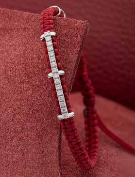 De A van Alfred (roepnaam: Alfie) en MC van Marie-Claire in deze handgeweven armband vervaardigd in rosegoud met diamanten herinnert me elke dag aan wat echt telt: familie en de momenten die we samen koesteren.”