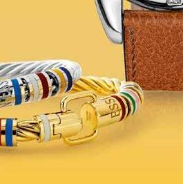 A ONE, VERKRIJGBAAR IN STAAL, 18KT GOUD EN GEZET MET DIAMANT — ‘AMALFI’ ARMBANDEN IN 18KT GOUD MET KERAMIEK MANCHETTEKNOPEN ‘NOARK’ IN 18KT GOUD MET EMAIL EN EDELSTENEN